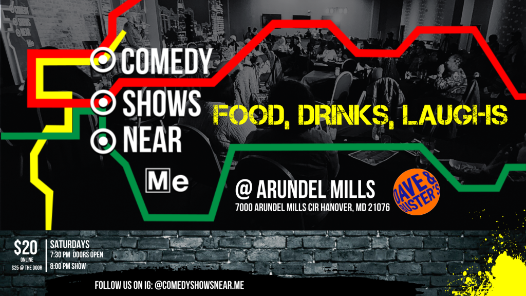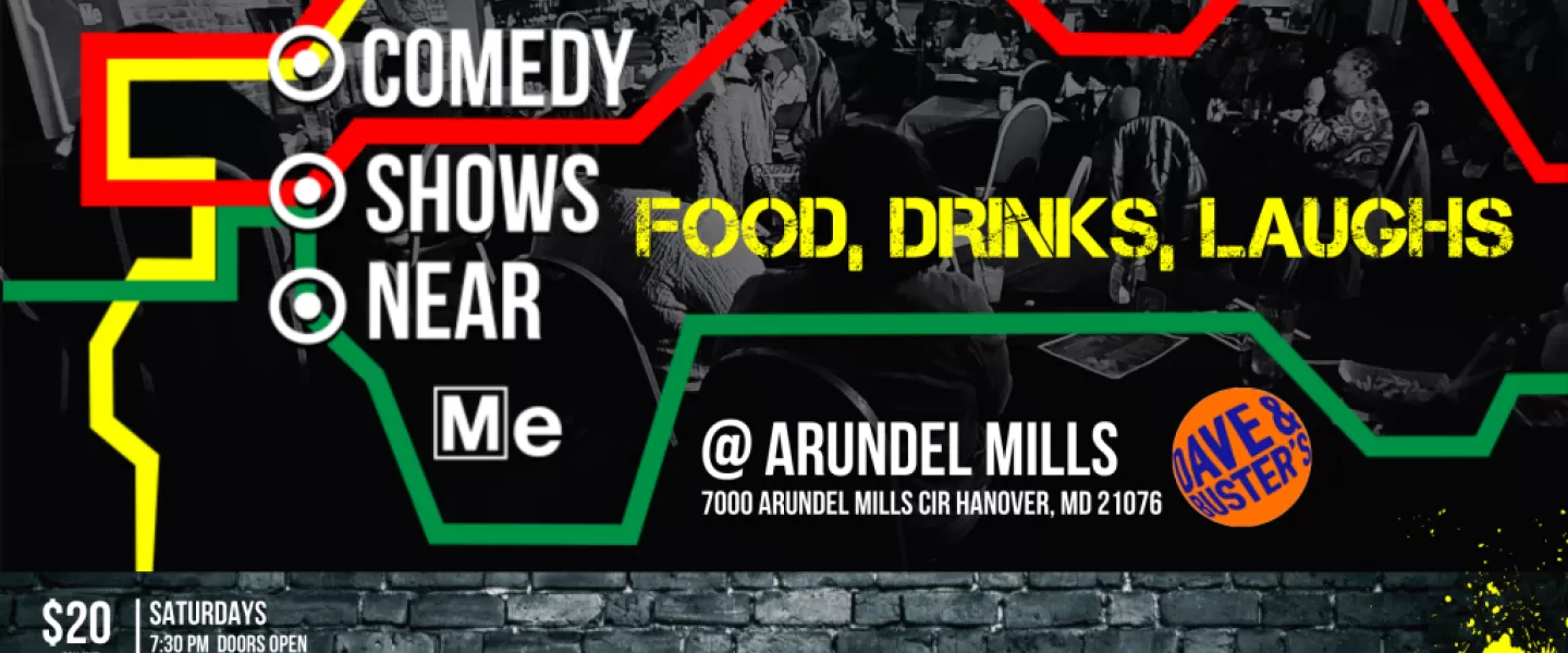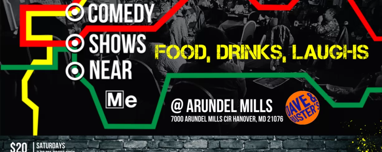 "Comedy Shows Near Me" is a monthly PopUP comedy club @ Dave & Busters Arundel Mills featuring comedians from Comedy Central, BET, Netflix, and Prime and all over the country!