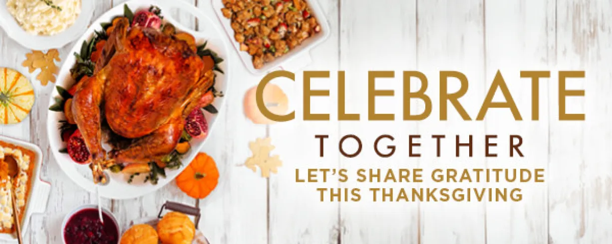 Our chefs are preparing slow-roasted turkey breast with all the classics: roasted vegetables, home-style stuffing, sweet potato mash, cranberry sauce, and rich turkey gravy.