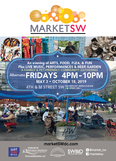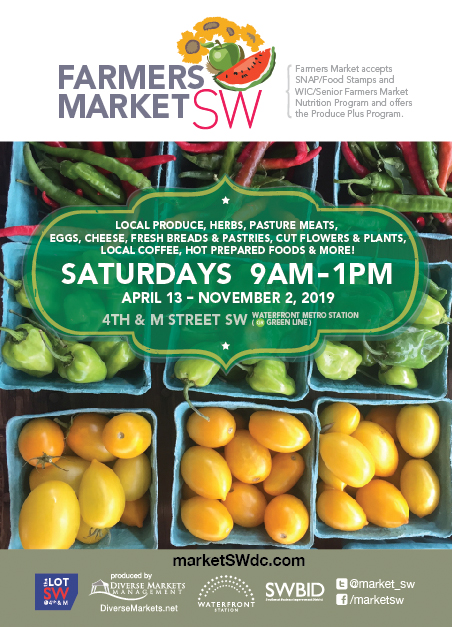 MarketSW operates throughout the summer months. Located on the corner of 4th and M St SW, directly across from the Southwest Waterfront Metro station. MarketSW combines Friday evening night markets and Saturday morning Farmers Market in the heart of Southwest DC.
