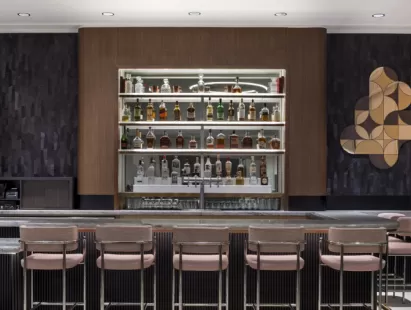 A lively and trendy lobby bar with dining space, in the heart of downtown dc, specializing in gin and bourbon cocktails, vast..