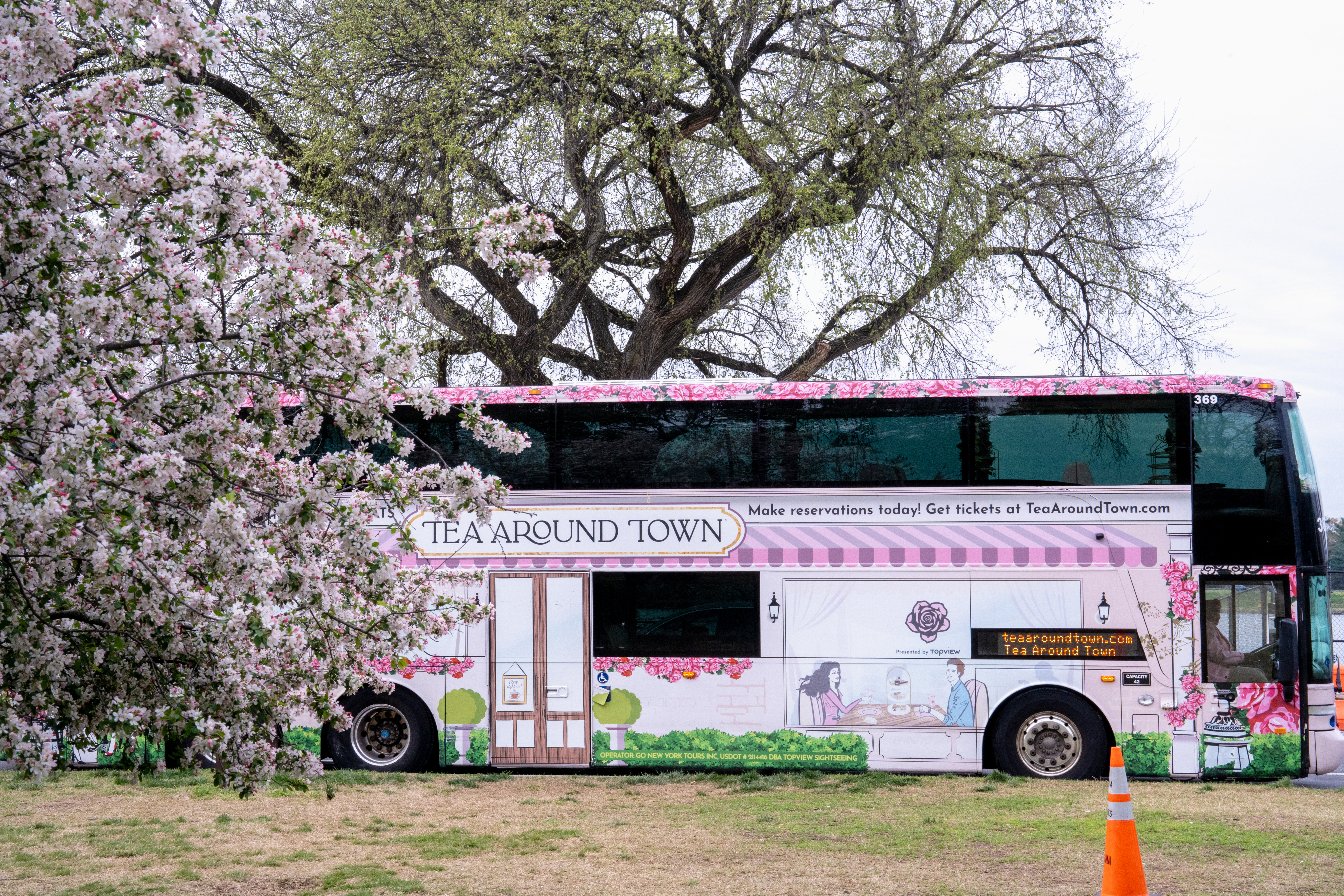 - Ride aboard a double-decker, floral-themed bus transformed into a whimsical moving tea room.