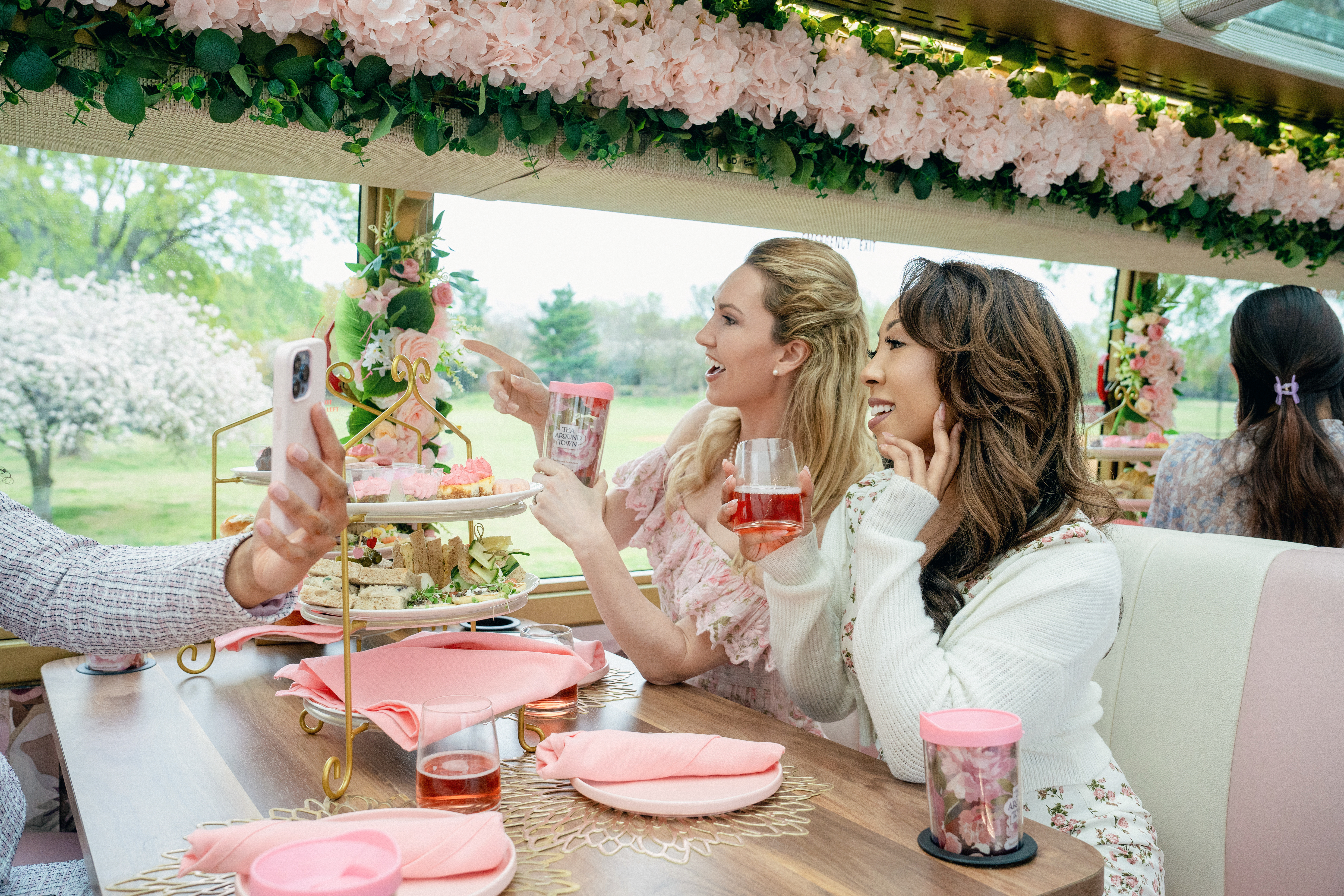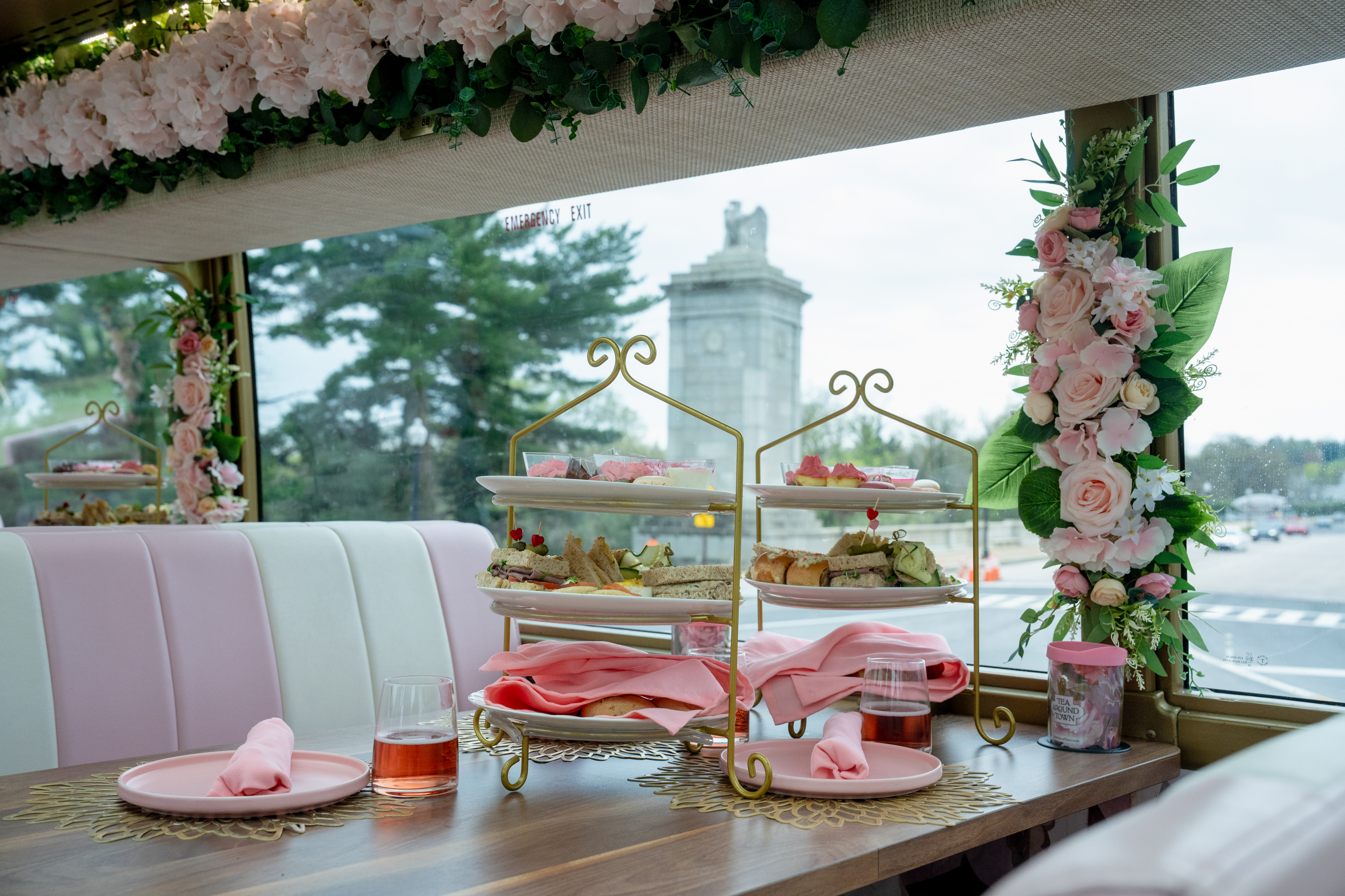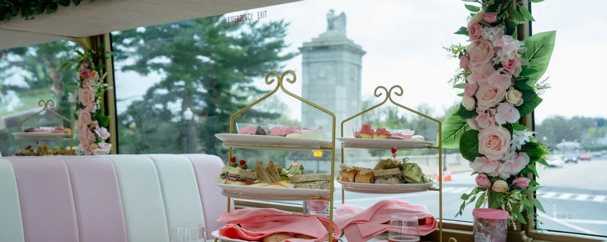 Our charming double-decker floral haven offers breathtaking views, fine teas, delectable treats, and live entertainment. Make your DC adventure unforgettable—book your moving tea party today!