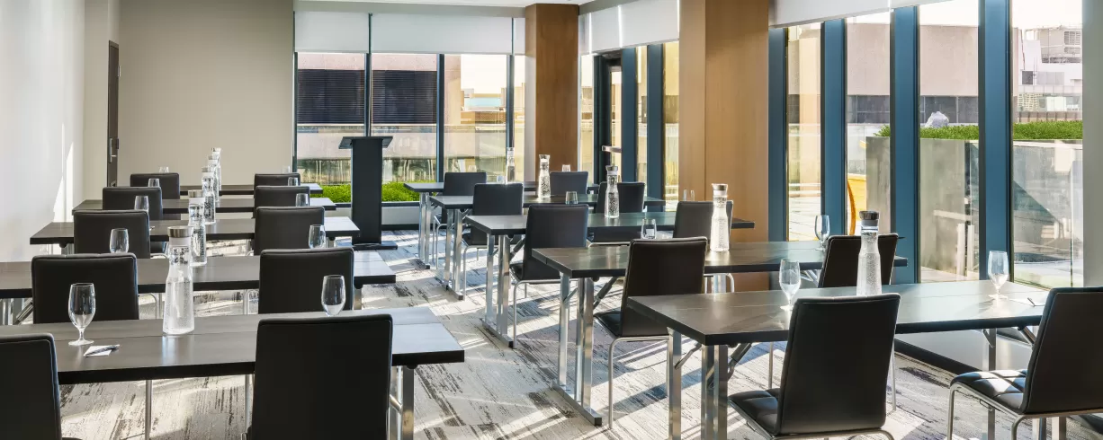 NEW building with 219 rooms located in Downtown DC. Our meeting rooms are located on the 14th floor (rooftop) with plenty of natural light and scenic views, floor to ceiling windows, no pillars, built-in audio-visual and a terrace for an outdoor event experience.