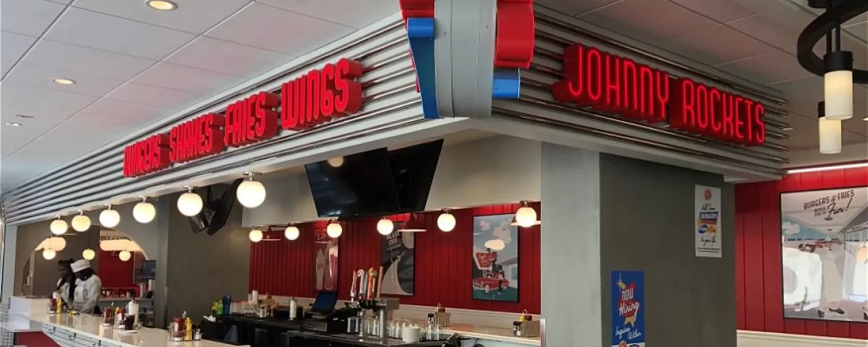 An American-style Diner restaurant that whose menu offerings are hamburgers, hot dogs, salads, sandwiches, milk shakes, specialty cocktails and hurricane wings. The Johnny Rockets offers an atmosphere of counter seating and booths. The décor is based upon 1950's diner-style restaurants. As the Johnny Rockets will be situated in our hotel, we will offer à la carte and buffet breakfast, lunch and dinner. This Johnny Rockets will also be unique as it has a bar to complement the restaurant, which is the first of its kind. Glen Pittman- F&B Director and Mya Robinson - F&B Manager will work with the Johnny Rockets staff to provide excellent customer service and quality food, shakes and beverages.