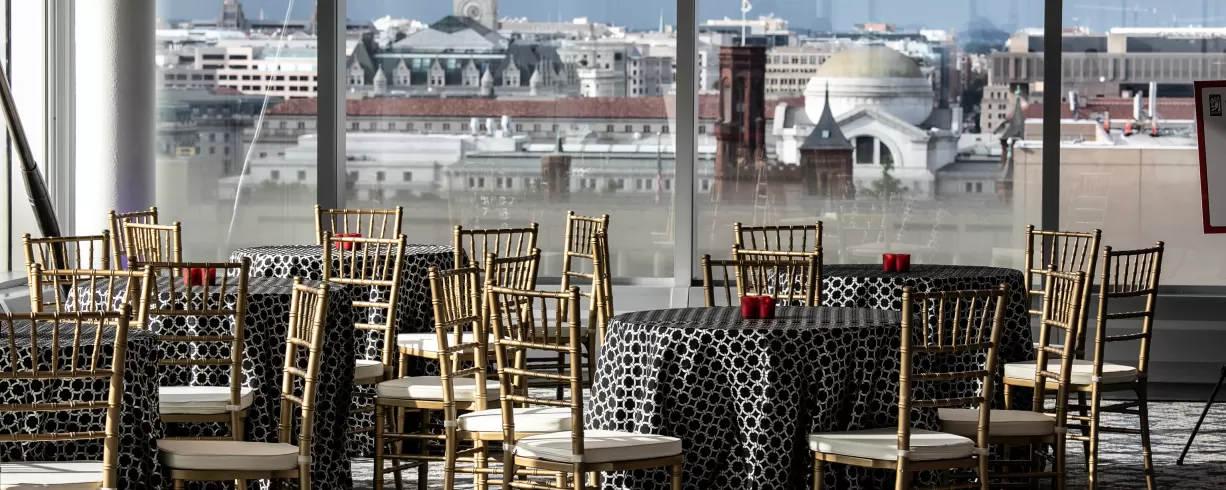 The Museum’s 7th-floor private event space provides breathtaking, unparalleled panoramic views from the U.S. Capitol, the Washington Monument and the Potomac River. The contemporary space sets the stage for a wide range of events and includes state-of-the-art technology.