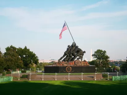 The U.S. Marine Corps War Memorial's world-famous statue, which is based on the iconic photograph taken by Associated Press p..