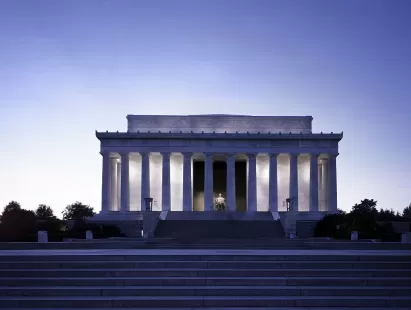 The grand Lincoln Memorial towers over the Reflecting Pool, anchoring the western end of the National Mall